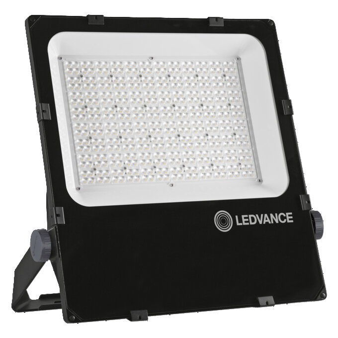 Floodlight met symmetrische lichtverdeling voor middelhoge tot hoge mastoppervlakteverlichting