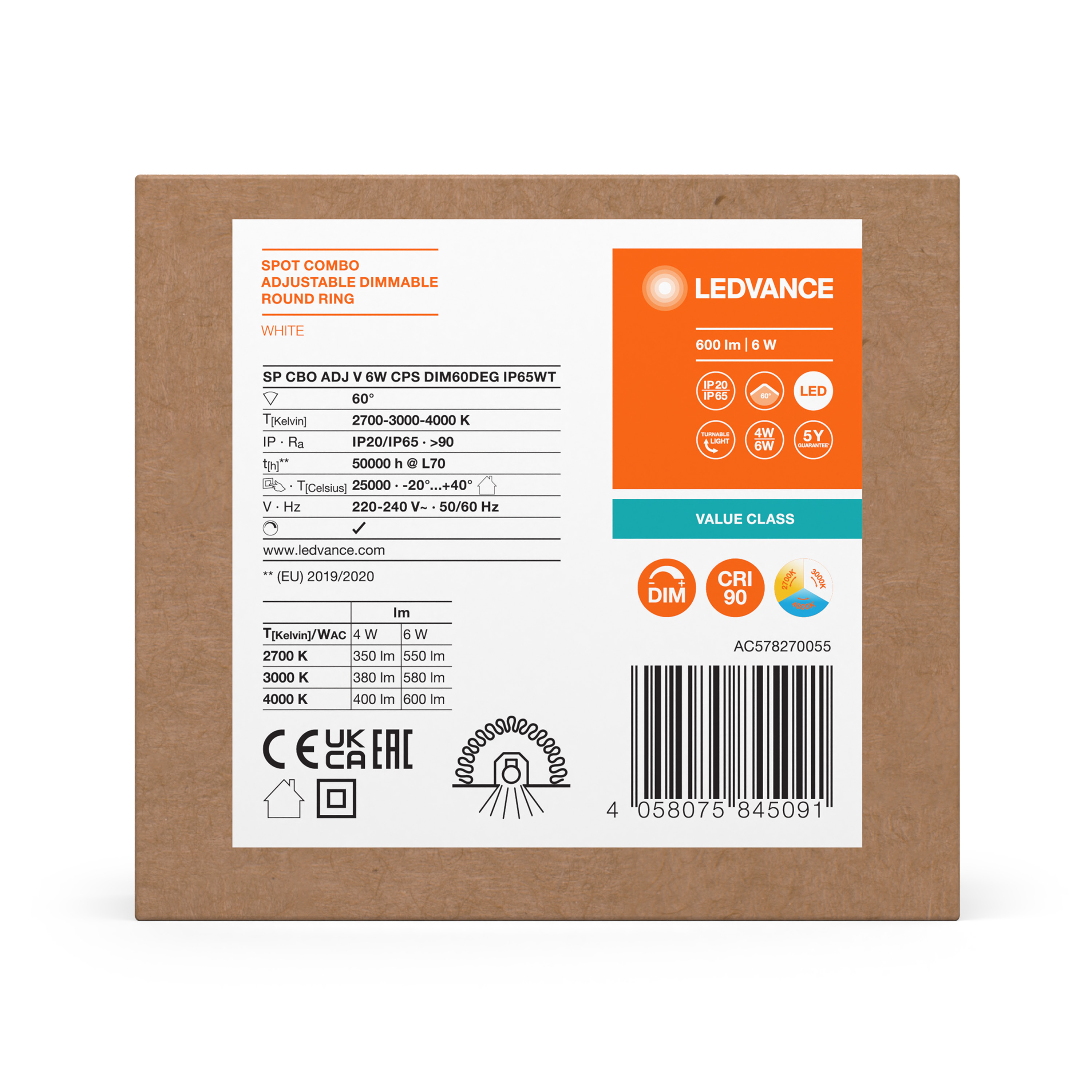| Kleurtemperatuur | 2700 K / 3000 K / 4000 K |