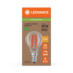 LED Classic P 40 Filament DIM Energy efficiency class B S 2.5W 827 Clear E14